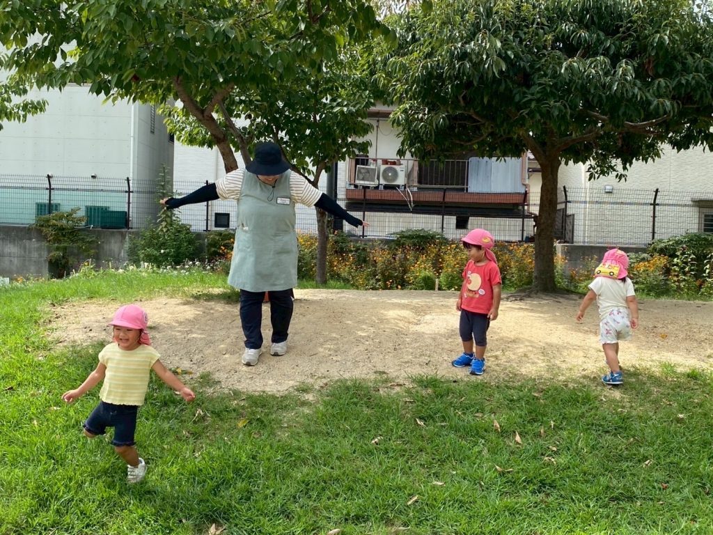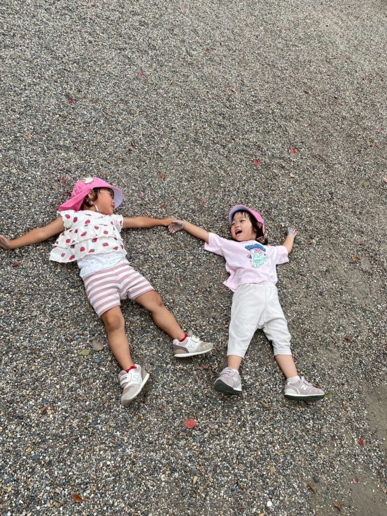 神社で友だちと転がってみたり、公園で走ったりと楽しく過ごしています♪