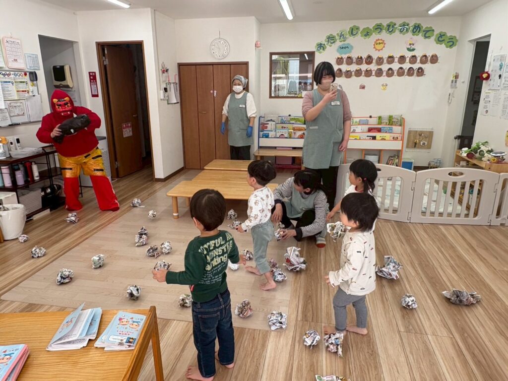 「おãĢはそとīŧã€ã€Œãĩãã¯ã†ãĄīŧã€ã¨čą†ãĢčĻ‹įĢ‹ãĻãŸæ–°čžį´™ã‚’æŠ•ã’ãĻいぞしたよīŧ